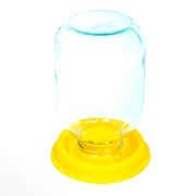 Модель несложной конструкции обеспечит регулярную подачу чистой воды вашим пернатым питомцам. Поилка изготовлена из пластика, состоит из бачка-конуса и крышки-дна. Вода заливается в бачок, плотно закрывается крышкой и перевернув ставится на нее. Постоянный уровень воды в поилке, обеспечивается за счет вакуума, образовавшегося в перевернутой банке.