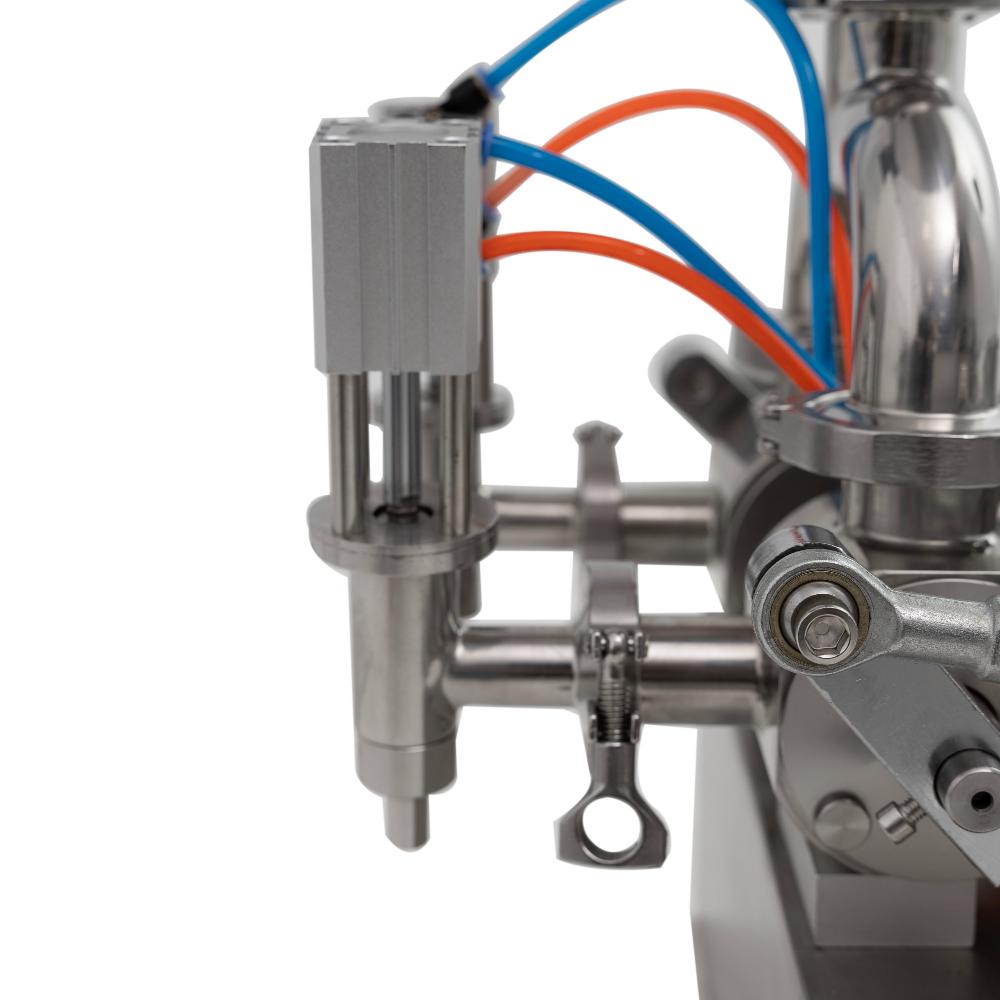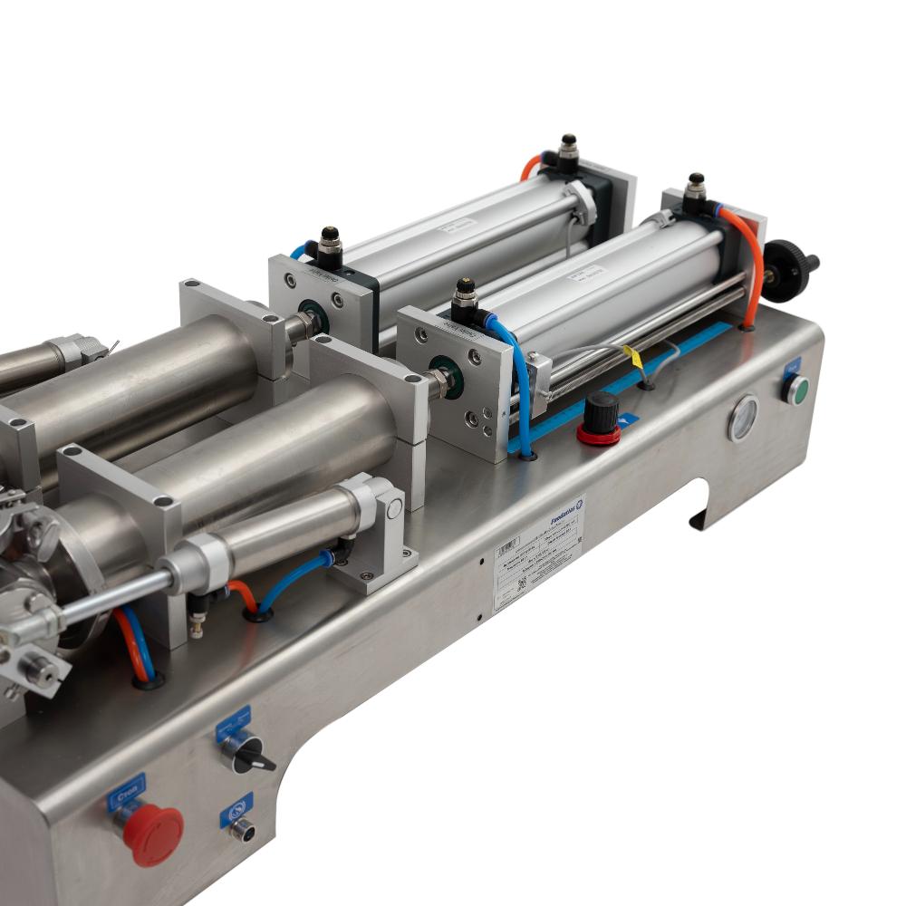 - Гибкая регулировка объёма и скорости. Ход поршня легко настраивается ручным колесом в диапазоне 100-1000 мл на каждую головку, а пневматические клапаны позволяют регулировать скорость наполнения и всасывания для оптимальной работы с различными продуктами.
