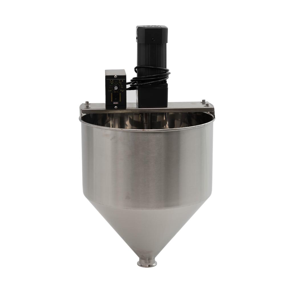 - Встроенная система перемешивания. Месильный орган с отдельным приводом постоянно перемешивает продукт в бункере, предотвращая образование комков, осадка и расслоение, что особенно важно для вязких и нестабильных составов.