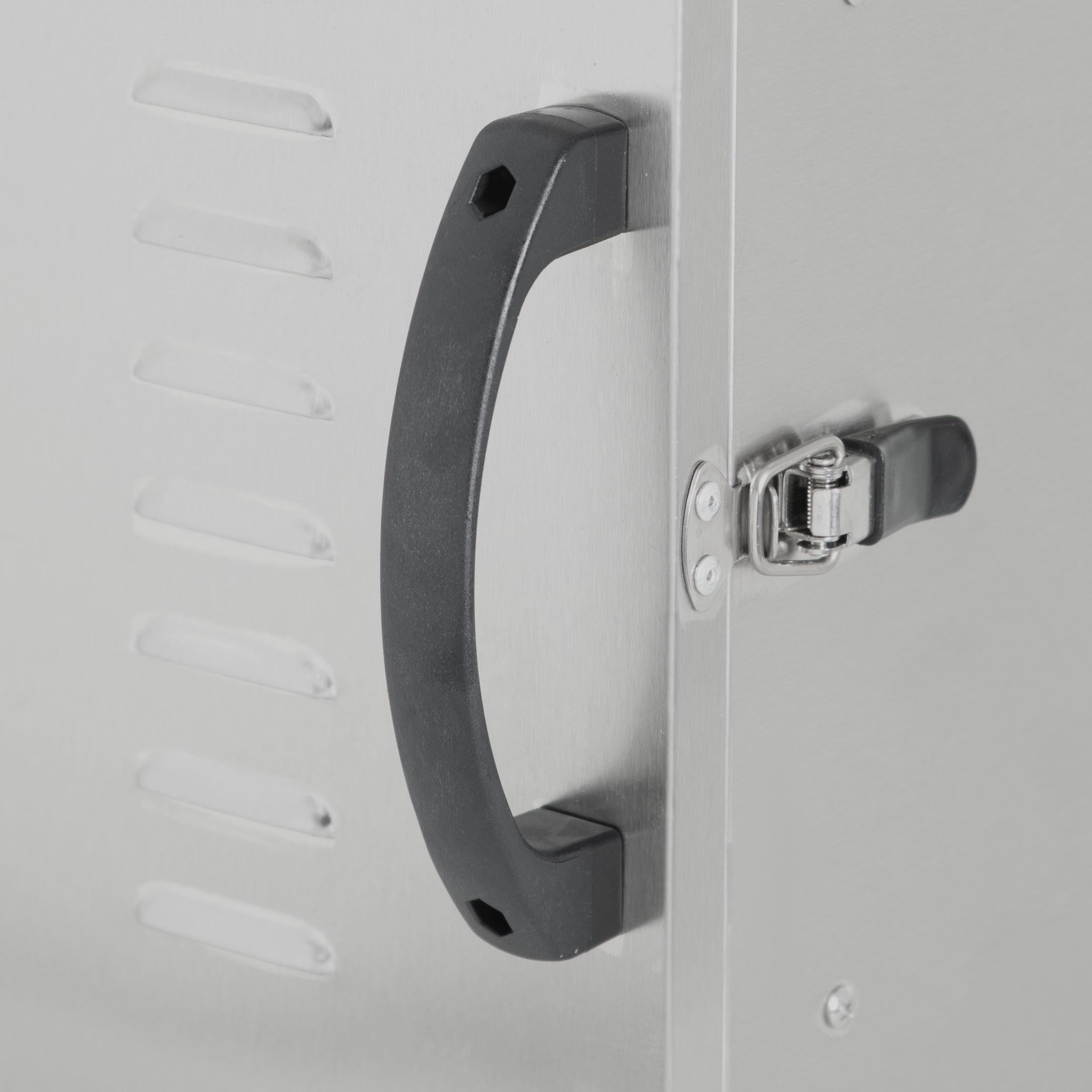 - Безопасность и удобство эксплуатации. Дверца закрывается на замок, эргономичная ручка и нескользящие ножки предотвращают случайное смещение. Все поверхности, контактирующие с продуктами, легко очищаются, что соответствует санитарным требованиям. Оборудование спроектировано для длительной работы в коммерческих условиях.