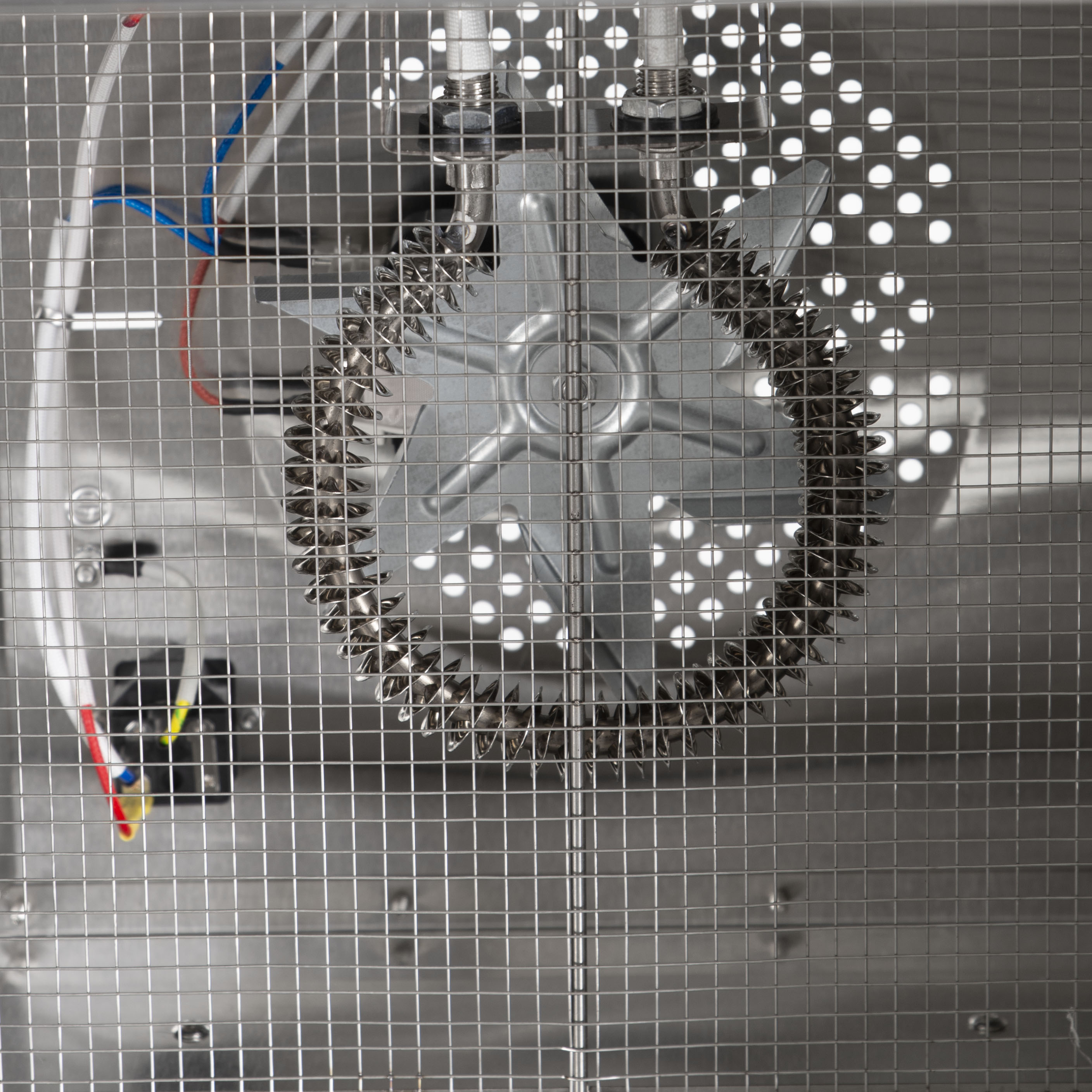 - Энергоэффективность и надёжность. Номинальная мощность всего 0,4 кВт в сочетании с эффективной циркуляцией воздуха сокращает время цикла и расход электроэнергии. Корпус из нержавеющей стали устойчив к коррозии и выдерживает интенсивную эксплуатацию.