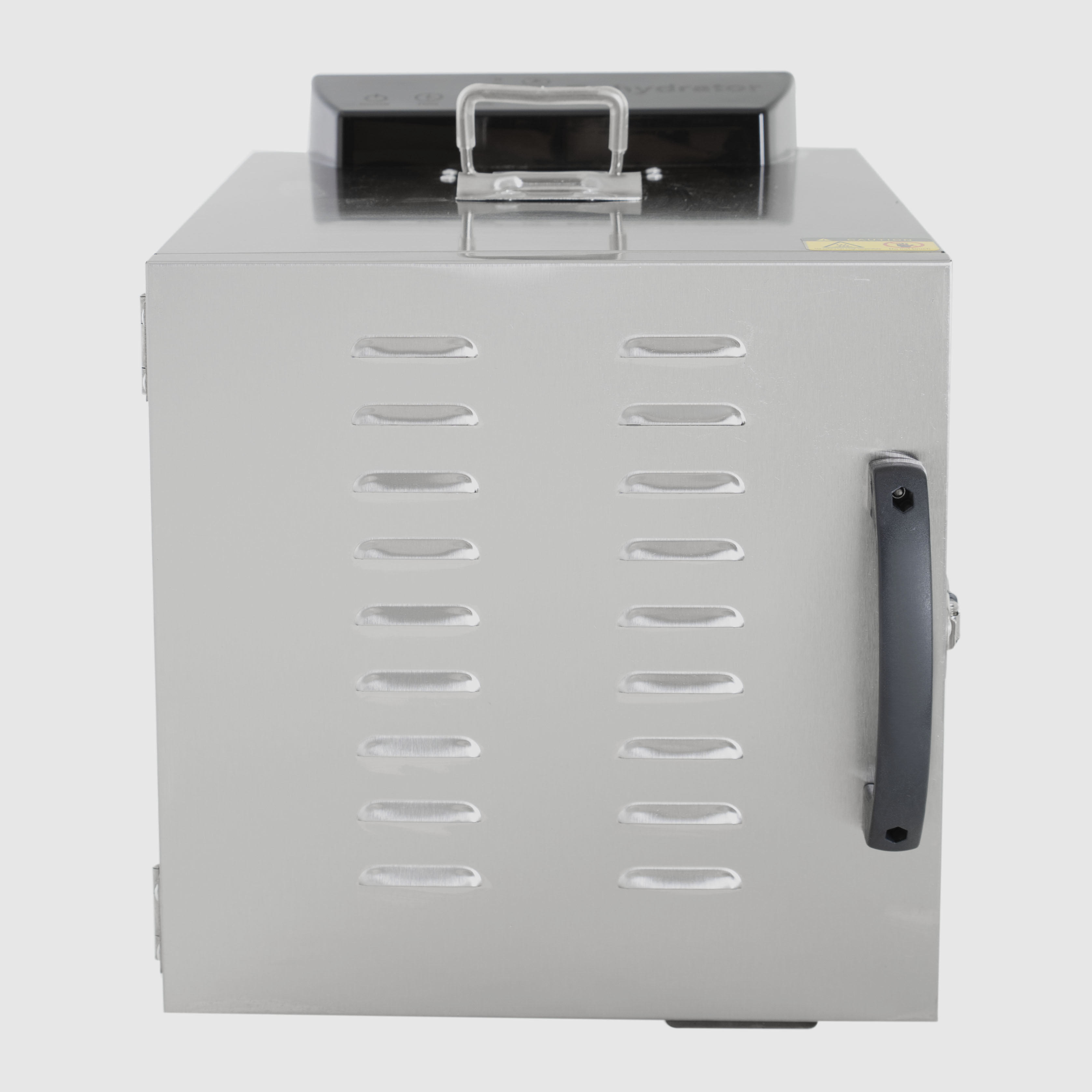 — это профессиональное оборудование горизонтального типа для щадящего обезвоживания пищевых продуктов методом конвекционной сушки, предназначенное для использования в кондитерских цехах, пекарнях, на предприятиях общественного питания и в точках реализации здорового питания. Аппарат оснащён нагревательным элементом (ТЭН) и вентилятором, расположенными на задней стенке камеры, что обеспечивает равномерное распределение горячего воздуха по всем уровням без необходимости перекладывать сырьё. Устройство подходит для сушки овощей, фруктов, зелени, грибов, мяса, рыбы, а также для приготовления йогуртов, сухариков и вяленых деликатесов. Компактные габариты и продуманная конструкция позволяют эффективно использовать рабочее пространство профессиональной кухни.