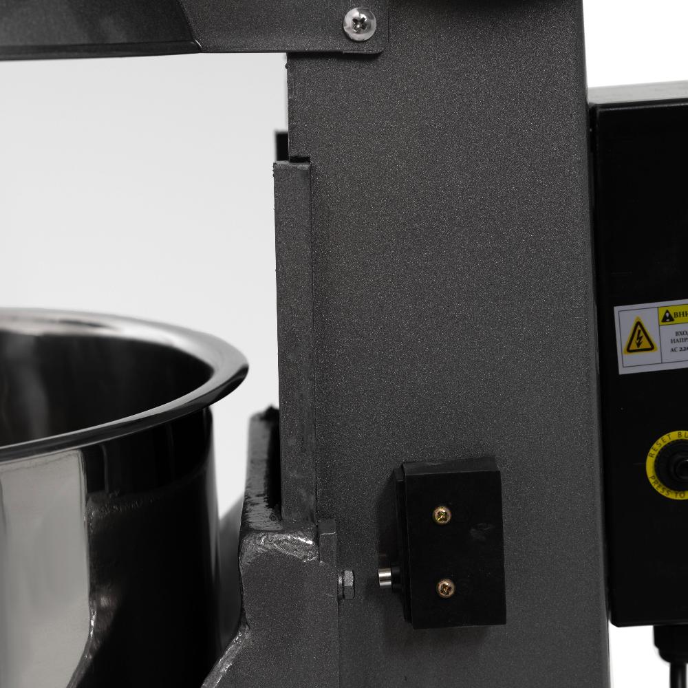- Подъем/Опускание дежи. Для удобства снятия/установки дежи, при загрузке продукта. Верхние и нижние пределы движения дежи осуществили за счет ограничителей.